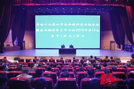 下午,尹志刚来到临武县委,为临武县委理论学习中心组成员和各乡镇、县直单位主要领导、县委宣讲团成员作宣讲报告。尹志刚从党的十九届四中全会的重大意义,中国特色社会主义制度和国家治理体系的显著优势,全会《决定》提出的总体要求、总体目标和重点任务,全面落实目标任务等四个方面进行了深入解读,报告主题鲜明、内涵丰富、深入浅出、解读透彻,既是一次精准辅导、又是一堂生动党课,对临武深入学习宣传党的十九届四中全会的精神实质、丰富内涵具有十分重要的指导作用。